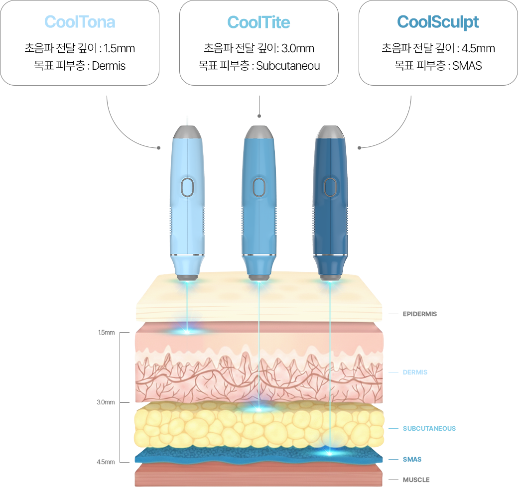 3가지 어플리케이터를 피부 깊이에 따라 다르게