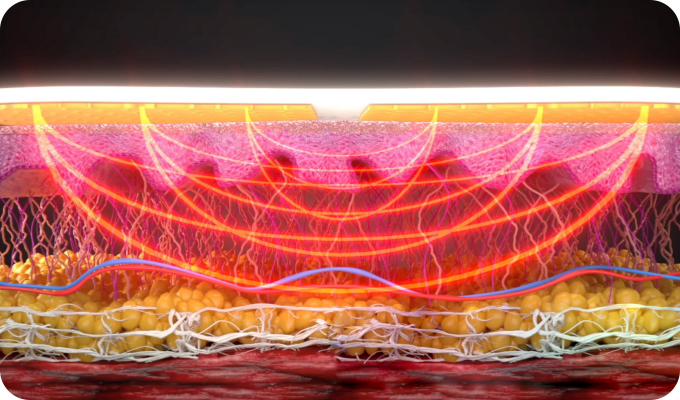 열 자극이 진피층과 지방층에 균일하게 분포되도록 설계되어 있어